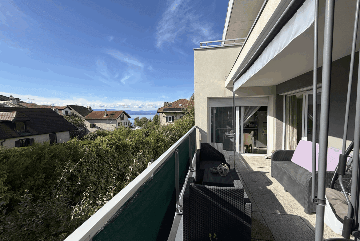 Situé en retrait de la circulation mais à deux pas du Lac, cet appartement est situé dans une copropriété récente et à taille humaine.