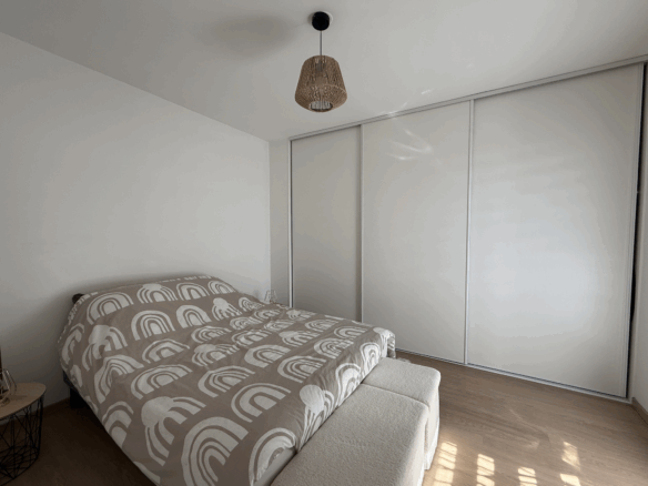 Il dispose de deux chambres; la première de plus de 11m2 et la seconde, avec son grand placard-dressing mesure environ 12,5m2