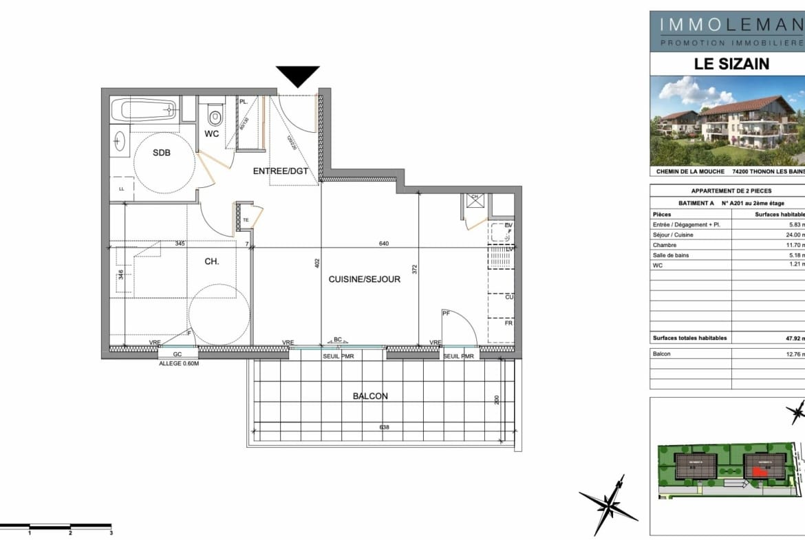Les Copains de l'Immo vous présentent ce T2 de 47,92m2 au dernier étage.