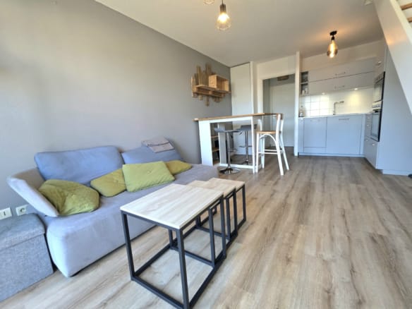 Appartement T2 bis en duplex de 61 m2 utiles dont 53.57 m2 en loi Carrez, situé proche du parc de la Chataigneraie et des plages. Situé au 1er et dernier étage, il vous offre une entrée avec placard de rangement, 1 wc visiteur, une cuisine équipée, un séjour / salon qui s’ouvrent sur la petite terrasse. Au 1er étage, l’espace nuit est composé d’une grande mezzanine de 10 m2 qui peut être aménagée facilement en une chambre, une salle de bains et une chambre de 17 m2 avec grand placard double aménagé. Une place de stationnement privée est attachée à l’appartement dans l’enceinte de la résidence qui est sécurisée par un portail motorisé. Cet appartement a subi des travaux de rénovation, ce qui le rend moderne, confortable et lumineux. Le syndic est semi-bénévole, un atout pour les faibles charges de copropriété. Idéale pour un 1er achat ou pour un investissement locatif. N’hésitez à me contacter pour organiser une visite.