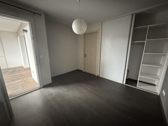 Situé au deuxième étage avec ascenseur, il offre une pièce de vie ouverte sur un balcon ‘Sud/Ouest’ avec une cuisine partiellement équipée, une grande chambre avec placard et accès balcon, une salle de bains et un WC indépendant. L’appartement et la copropriété répondent aux normes PMR.