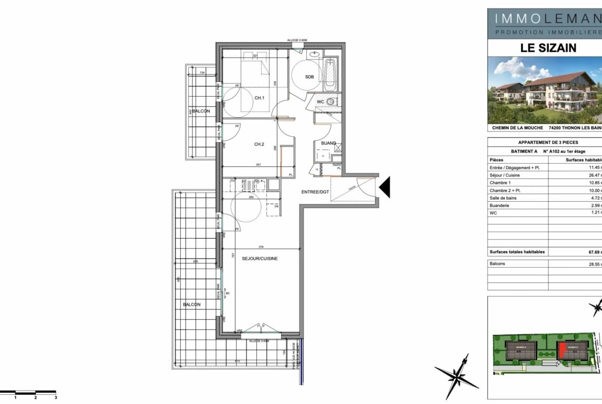 Les Copains de l'Immo vous présentent ce T3 de 67,69m2 au premier étage.