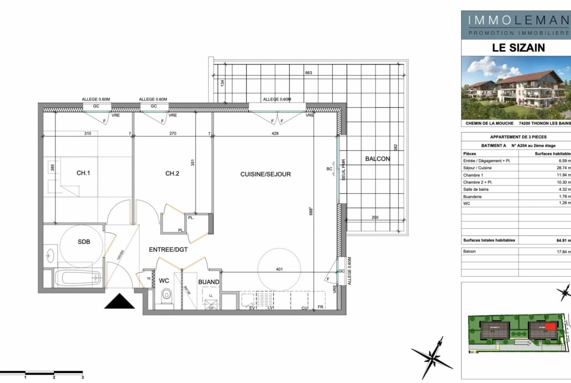 Les Copains de l'Immo vous présentent ce T3 de 64,91m2 au dernier étage.