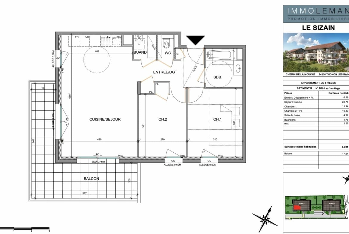 Les Copains de l'Immo vous présentent ce T3 de 64,91m2 au premier étage.