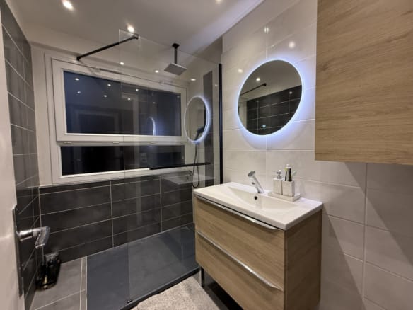 Le coin nuit regroupe deux chambres, une d’environ 13m2 et la deuxième d’environ 11m2, sa salle de bains moderne dispose d’une grande fenêtre laissant entrer une belle luminosité.