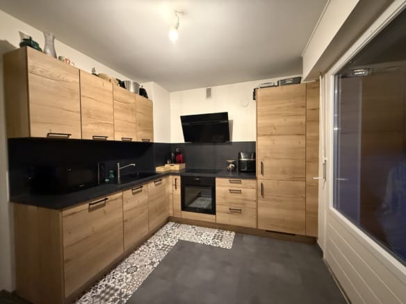 Partiellement renové, sa cuisine est entièrement équipée et moderne, elle béneficie d’une magnifique verrière.