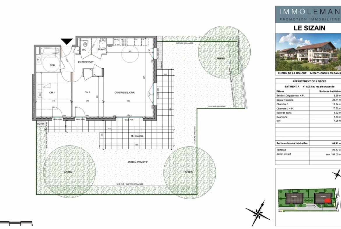 Les Copains de l'Immo vous présentent ce T3 de 64,91m2 en rez-de-jardin.