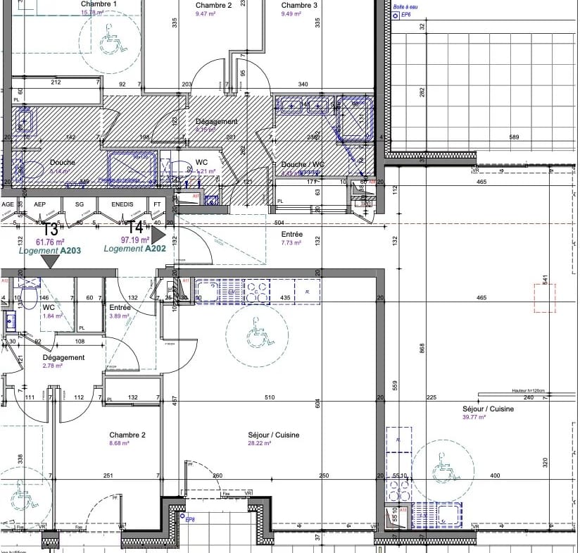 Il se compose d'une entrée, d'un séjour, d'une cuisine, de trois chambres, d'un dégagement, d'une salle de bains, d'une salle de douche et de toilettes séparés.
