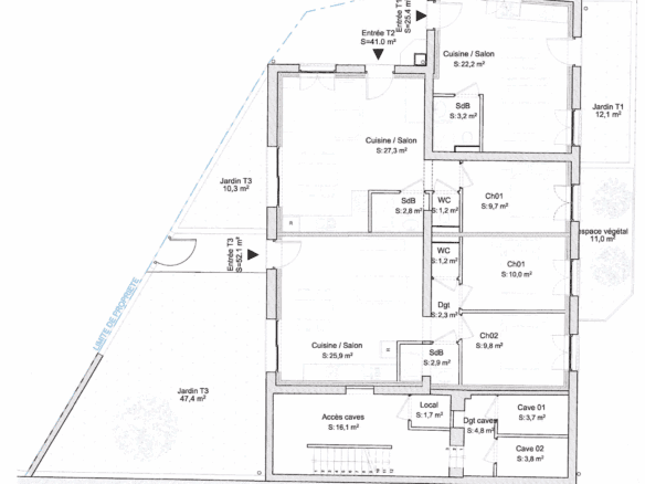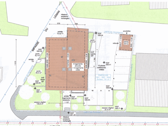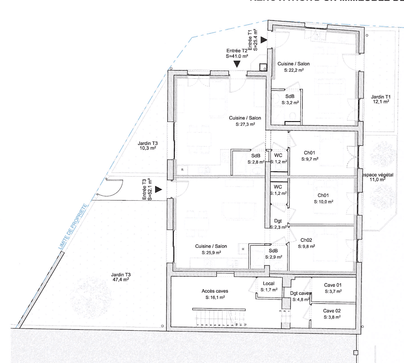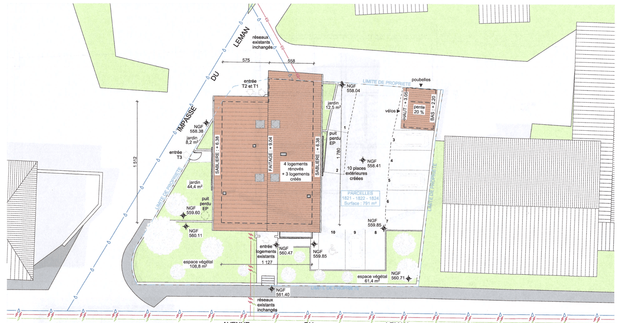 En bref, un projet d’environ 400 m2 habitables divisés en 7 appartements sur un terrain de 825 m2.