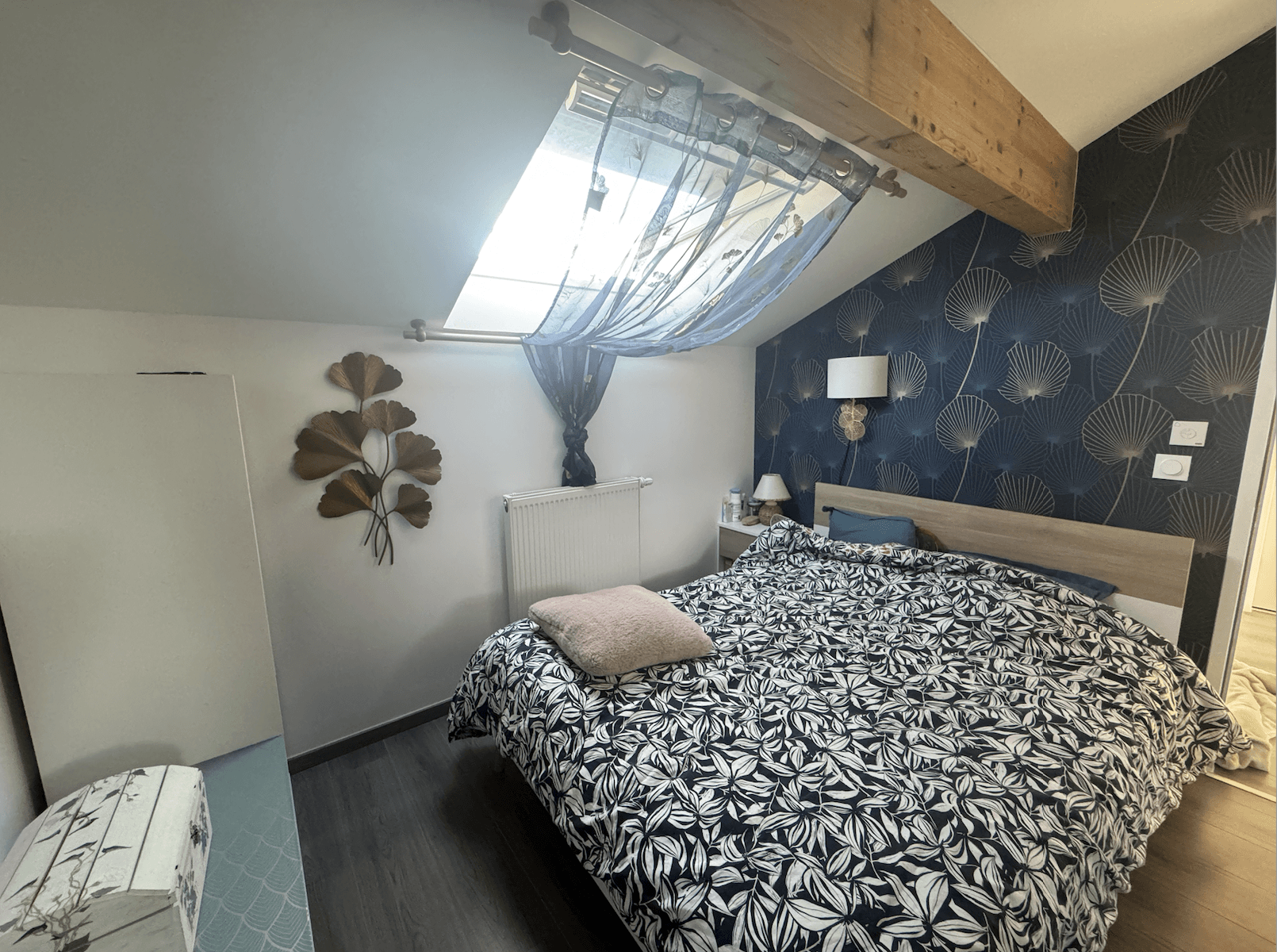 A l’étage il vous offre trois belles chambres et une salle de bains avec toilette. Aucuns travaux à prévoir, appartement coup de coeur !