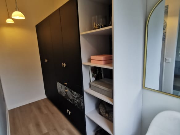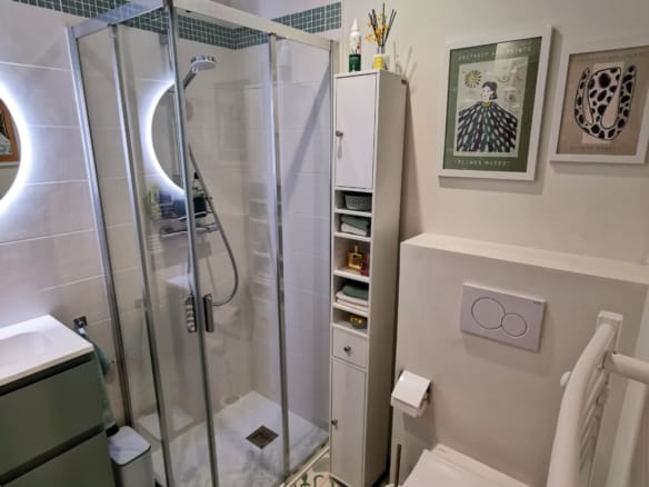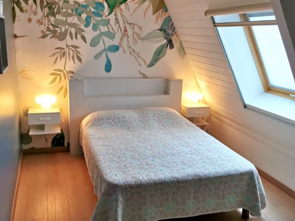 La villa comprend actuellement deux chambres dont une suite parentale avec salle de douche privative. Un salon télé indépendant de 18 m2 offre une flexibilité supplémentaire, pouvant être transformé en une ou deux chambres supplémentaires en fonction de vos besoins. Une salle de douche indépendante complète les espaces de vie.
